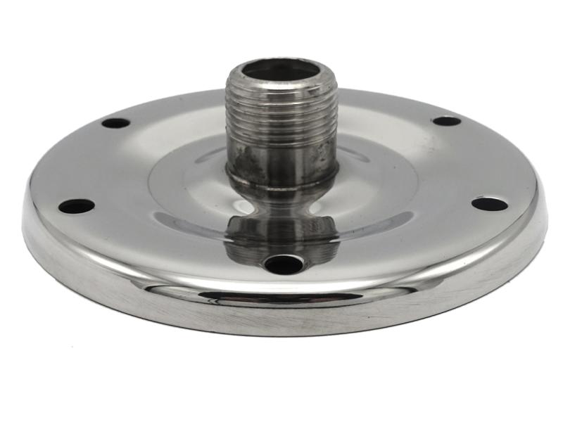Фланець з нержавіючої сталі виробництва Китай бренда toНАСОСИ. Для мембрани з горловиною 90мм. Фланець гідроакумулятора являє собою металевий диск з шістьма отворами і різьбовим штуцером на кінці. Дана деталь є складним комплектуючим елементом гідроакумулятора. Фланець забезпечує надійну герметичність даного пристрою. До різьбової частини виробу приєднують підвідний трубопровід для подачі води в гідроакумулятор. Вказаний агрегат в парі з механічним реле тиску служить для вирівнювання напору води, який створює насосну станцію і далі розподіляється по всій системі водопостачання. Отже, застосування гідроакумулятора дозволяє уникнути гідравлічних ударів у напорних системах і, таким чином, забезпечує оптимальний тиск, необхідний для функціонування системи подачі та розподілу води.
