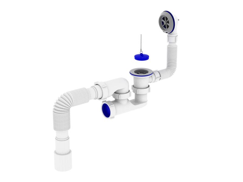 Сифон для ванни з ревізією, випуском 11/2"х40, переливом та гнучкою трубою 40х40/50 MILLZ 1/40