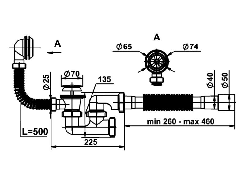 Сифон для ванни з ревізією, переливом, випуском Сlick-Сlack та гофротрубою 40х40/50 MILLZ 1/40