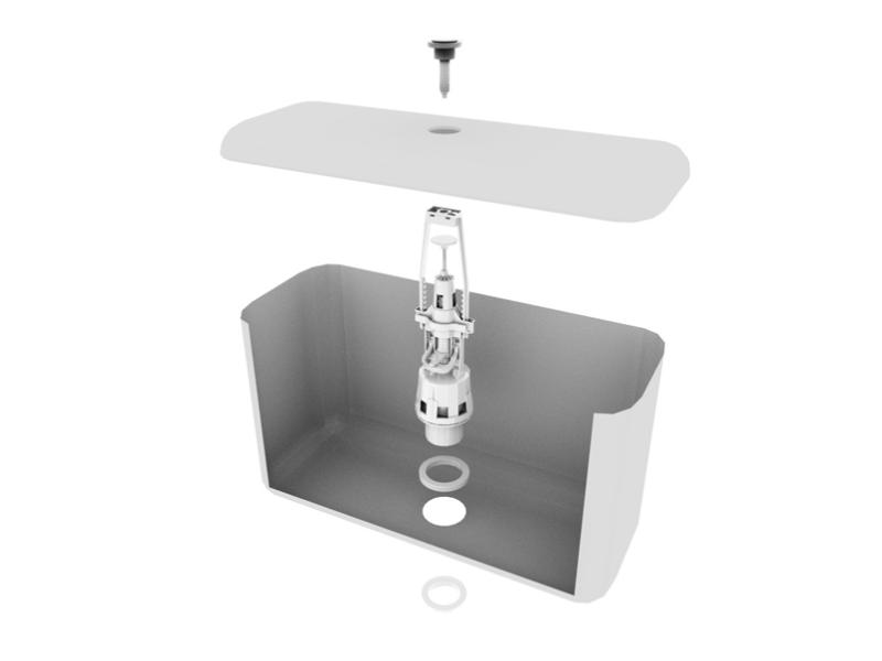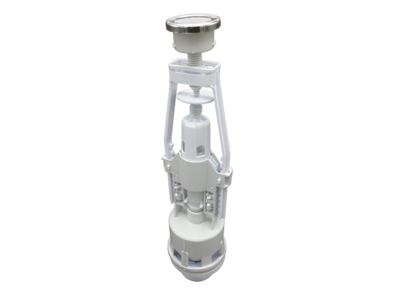 Зливний механізм бачка унітазу з одним режимом зливу і хромованою кнопкою MILLZ BD1R0410. Комплектується двома кільцями з еластичного спіненого ППУ, що забезпечують надійну герметизацію під час встановлення механізму в бачку унітазу. Так само в комплект входить набір кріплення бачка до унітазу. Область застосування для зливу води з бачка унітазу для бачка унітазу зі зливним отвором Ø60-70 мм Технічні характеристики діаметр приєднувального отвору в бачку унітазу 60-70 мм кількість режимів зливу - 1 середня витрата води, що подається з бачка на змив через арматуру, не менше ніж 2,5 л/сек рівень шуму під час роботи не більше 50 дБА встановлений ресурс не менше 150000 циклів зусилля натискання кнопки для запуску зливу води не більше 20Н довжина нержавіючих гвинтів кріплення бачка до унітазу 82 мм висота комплектованого бачка з кришкою 330-400 мм Властивості комплектується двома кільцями з еластичного спіненого ППУ, що забезпечують надійну герметизацію під час встановлення механізму в бачку унітазу. У комплект входить набір кріплення бачка до унітазу гвинти, гайки і шайби для кріплення бачка до унітазу виготовлені з нержавіючої сталі. Кнопка і декоративне кільце кнопки пластмасові з хромованим покриттям робочий діапазон температур від 0 до +95 °C