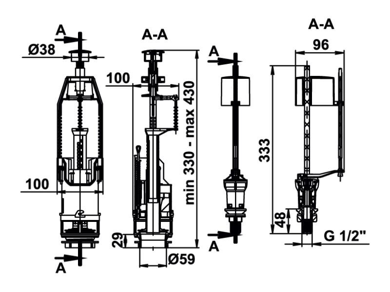 Набір для бачка унітазу MILLZ BK2R0810 складається з зливного механізму з подвійним режимом зливу і хромованою кнопкою і наливного клапана з нижньою підводкою пластиковим штуцером з різьбленням діаметром 1/2". Комплектується двома кільцями з еластичного спіненого ППУ, а також конусної і плоскою шайбами з еластичного високоякісного PVC, що забезпечують надійну герметизацію при установці клапана і механізму в бачку унітаза. Так само в комплект входить набір кріплення бачка до унітазу з гвинтами, гайками і шайбам з нержавіючої сталі. Область застосування для підключення унітазного бачка з нижнім підведенням до мережі водопостачання для автоматичного наповнення унітазного бачка водою для зливу води з бачка унітазу для бачка унітазу із зливним отвором Ø60-70 мм Технічні характеристики приєднувальний розмір до мережі водопостачання G1/2" діапазон робочих тисків 0,05-1,0 Мпа час заповнення бачка в обсязі 6,0 л не більше 150 секунд стабільність рівня наповнення унітазного бачка водою не більше +/-2 мм рівень шуму при роботі не більше 50 дБА встановлений ресурс не менше 150000 циклів висота комплектного бачка з кришкою 330-400 мм діаметр приєднувального отвору в бачку унітаза 60-70 мм кількість режимів зливу - 2 обсяг зливаної води в першому (економному) режимі - 3 л середня витрата води, яка подається з бачка на змив через арматуру не менше 2,5 л/сек зусилля натискання кнопки для запуску зливу води не більше 20Н довжина нержавіючих гвинтів кріплення бачка до унітазу 82 мм Властивості комплектується ущільнювальними конусної і плоскою шайбами для герметизації з'єднання наливного клапана з бачком унітазу конусна і плоска шайби виготовлені з еластичного високоякісного PVC комплектується двома кільцями з еластичного спіненого ППУ, що забезпечують надійну герметизацію при установці зливного механізму в бачок унітаза, а так само при установці бачка унітазу на поличку унітаза штуцер різьбовий з високоякісного пластика в комплект входить набір кріплення бачка до унітазу гвинти, гайки і шайби для кріплення бачка до унітазу виготовлені з нержавіючої сталі кнопка і декоративне кільце кнопки пластмасові з хромованим покриттям робочий діапазон температур від 0 до + 95° C