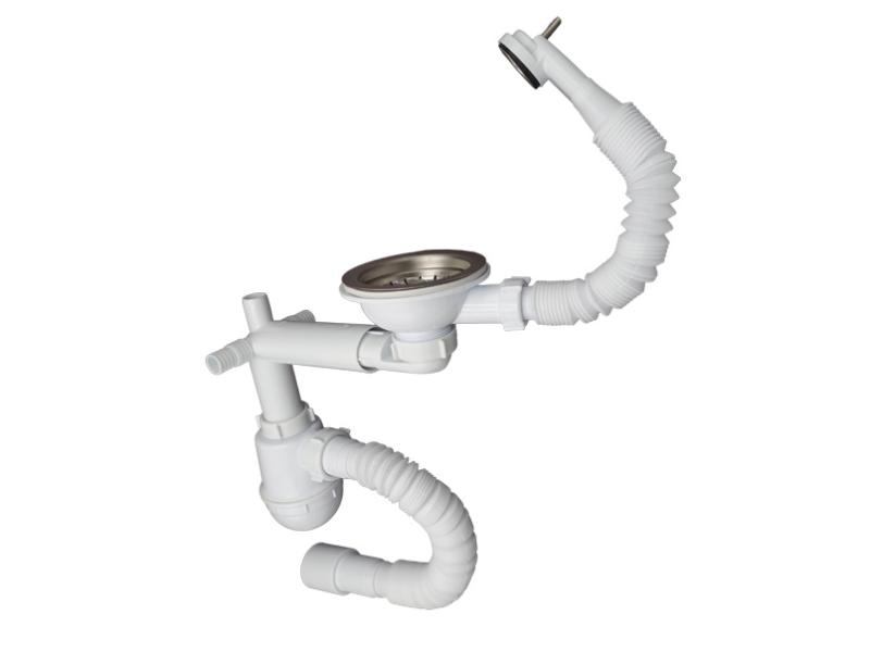Сифон мийка 3 1/2"х40 телеск, різьб.вип, відвід пр.маш і посуд, гофр 40х40/50 кругл.перелив MILLZ