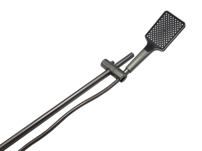 Змішувач для душа зі стійкою бренду MILLZ MRS-AL-E2-1 Gray – це витончене та сучасне рішення для душової кабіни. Він виготовлений із високоякісного екологічного алюмінію, який підходить навіть для питної води. Стійке сіре покриття надає елегантного вигляду та захищає поверхню від впливу вологи. Корпус має видовжену прямокутну форму з плавно заокругленими краями зверху та чіткими гострими лініями внизу, створюючи вишуканий стиль. Одноважільний перемикач із гладкою ручкою, що трохи звужується на кінці, забезпечує зручне регулювання натиску та температури води. Під ручкою розташоване маркування у вигляді білого кружечка з двома кольоровими іконками – синьою та червоною – для швидкого орієнтування між холодною та гарячою водою. Квадратна лійка з білими форсунками підключається до прямого силіконового шланга. Після використання душ фіксується на спеціальний тримач, далі кріпиться на штангу. Саме це є перевагою цього товару, оскільки стійку можна коригувати під зріст споживача, і це дуже комфортно. Тип механізму – картриджний. Встановлюється змішувач на вертикальну поверхню, що робить його ідеальним для сучасних душових кабін. Комплектація включає: змішувач, шланг довжиною 1 м 50 см, квадратну лійку, тримач для душа, стійку довжиною 60 см, дві прокладки, дві декоративні чаші, два ексцентрики, два тримачі, два дюбелі, два саморізи, інструкцію та гарантійний талон. Корпус упакований у білий мішечок для запобігання подряпинам та продається у картонній коробці зі штрих-кодом. Габарити упаковки становлять 63,0*16,0*10,5 см. Гарантійний термін становить 4 роки.