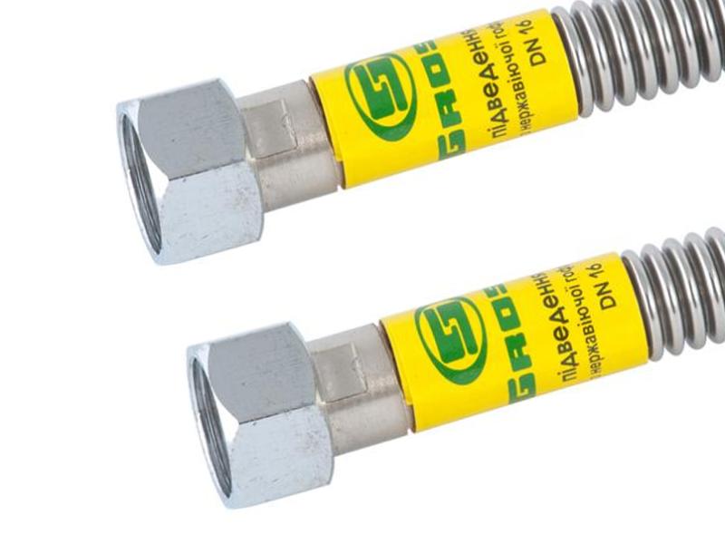 Гофрований шланг сильфонного типу для газу, виготовлений з високоякісних матеріалів, які забезпечують тривалу експлуатацію. Основне призначення - підключення газових плит і колонок. Вся гнучка підводка для газу сертифікована, має необхідну документацію. Вони цілком зроблені з нержавіючої сталі, а тіло трубки - ребриста гофра. Продаються упакованими в поліетилен, з картонним тримачем. • Основні характеристики: • Виробник: Gross • Матеріал шланга: нержавіюча сталь • Довжина: 1,5 м • Радіус вигину: 20 мм • Внутрішня різьба: 1/2 " • Робочий тиск: 0,5 бар • Зовнішній діаметр: 90 мм • Мінімальна температура робочої рідини: -15.0 (град.) • Максимальна температура робочої рідини: 80.0 (град.) • З'єднання: внутрішнє-внутрішнє (ВВ). Бренд Gross має всі необхідні сертифікати якості (система контролю якості ISO 9001-2000). Вони найкраще витримують тиск газового потоку.