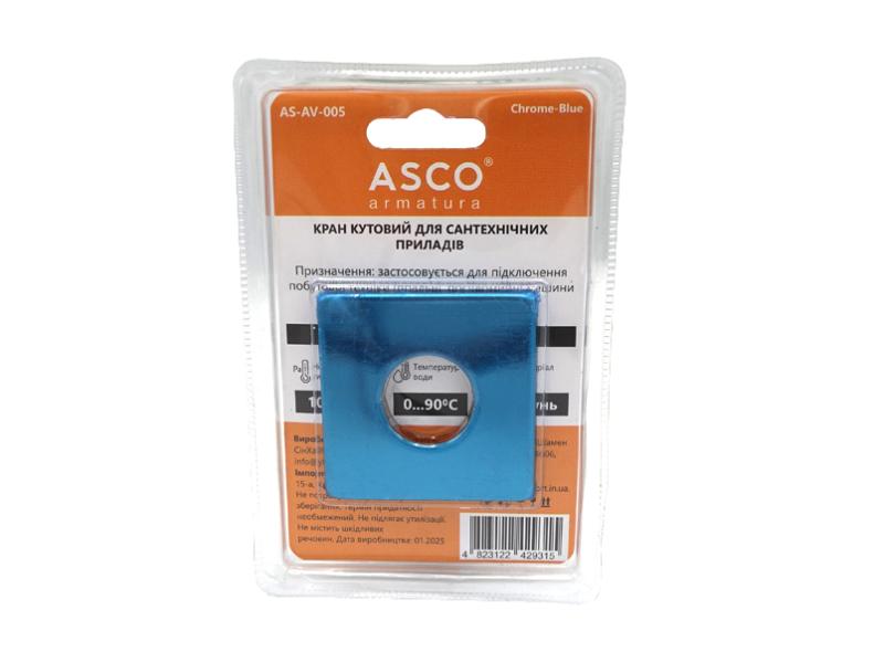 Кран кутовий для сантехприладів ASCO 1/2" х 1/2" хром AS-AV-005