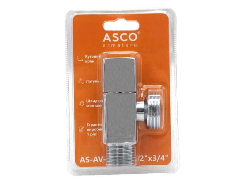 Кран кутовий для сантехприладів ASCO 1/2"х3/4" хром AS-AV-012
