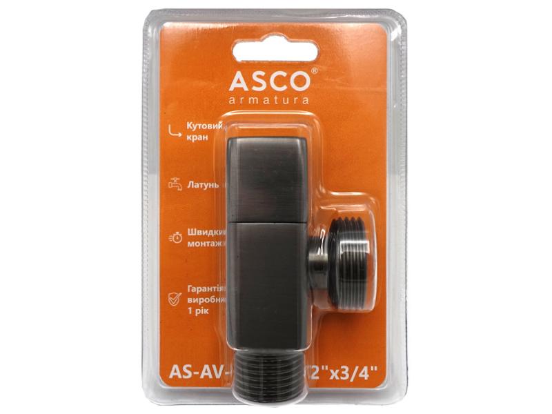 Кран кутовий для сантехприладів ASCO 1/2" х 3/4" Matte Gun Grey AS-AV-014