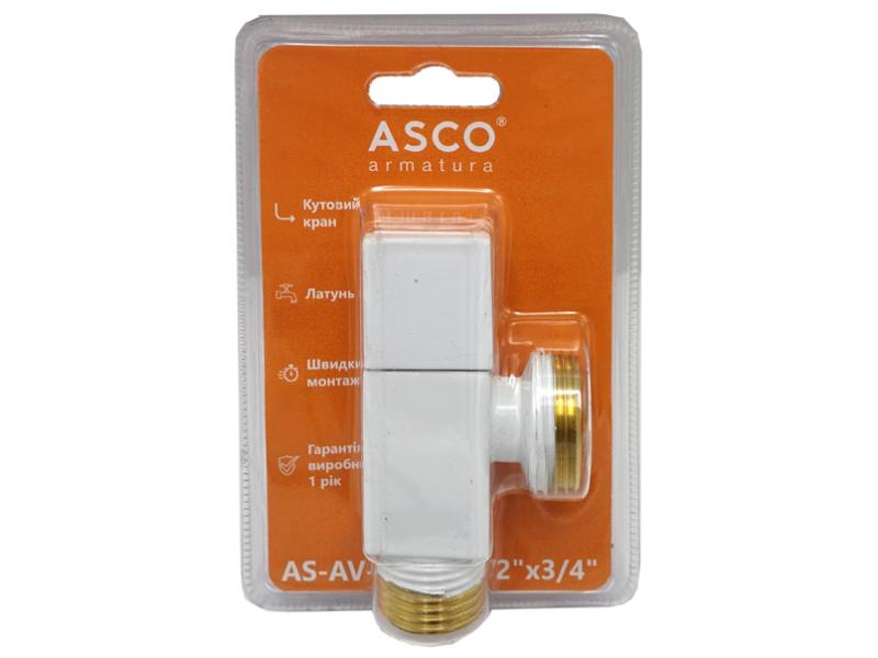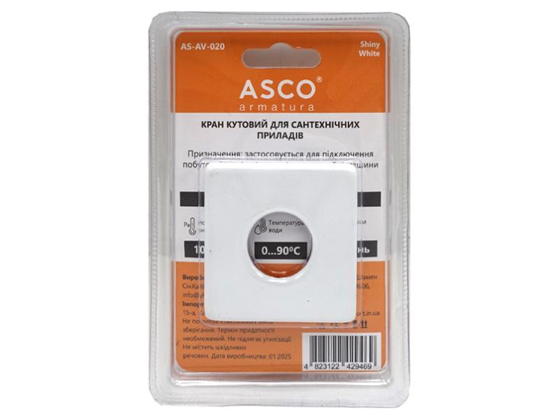 Кран кутовий для сантехприладів ASCO 1/2" х 3/4" Shinny White AS-AV-020