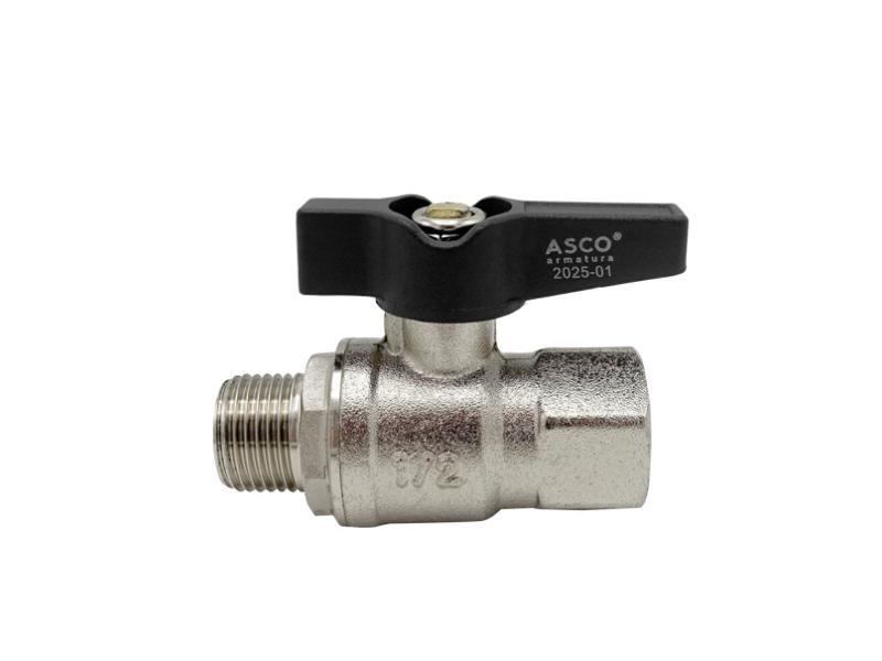 Кульовий кран від ASCO Nickel PRO з комбінованою, зовнішньою і внутрішньою, різьбою (1/2") і сірим пластмасовим важелем-метеликом призначений для установки на системи водопостачання та опалення. Корпус крана виконаний з міцної сталі та покритий антикорозійним нікелем, що підвищує його зносостійкість. Кран має повнопрохідний канал, який сприяє безперешкодному потоку води. Затворна куля забезпечує високу герметичність при перекритті води та не допускає її протікань. Компактний важіль-метелик легко керується і не розхитується згодом завдяки надійному кріпленню на гайку. Кран підлягає ремонту та має тривалий термін використання навіть в умовах інтенсивної експлуатації — 55 000 циклів. Витримує тиск до 40 бар та вплив температури від –30°C до +150°C. Монтується будь-яким способом — горизонтально та вертикально. Гарантійний термін — 7 років. Країна-виробник — Китай.