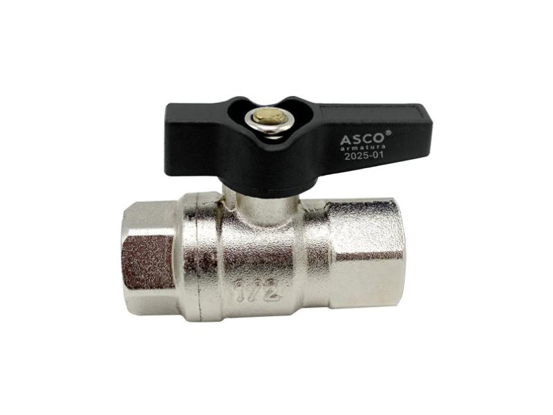 Кульовий кран від ASCO Nickel PRO з повнопрохідним каналом і двосторонньою внутрішньою різьбою (1/2") призначений для внутрішніх систем водопостачання та опалення. Корпус виготовлений із міцної сталі та покритий нікелем, що захищає його від корозії. Повнопрохідний канал крана забезпечує безперешкодний потік води та не допускає появи засорів. Розташований в ньому затворний шар із нікельованої сталі забезпечує високу герметичність при перекритті води. Важіль-метелик із високоякісного пластику сірого кольору забезпечує швидке відкриття/закриття води. Важіль закріплений гайкою, що запобігає його розхитуванню з часом. Кран витримує тиск до 40 бар та вплив температури від –30 °C до +150 °C. Монтується горизонтально та вертикально. Гарантійний термін — 7 років. Країна-виробник — Китай.