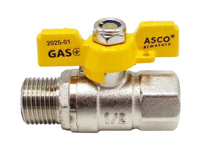 Кульовий кран від ASCO Nickel PRO призначений для внутрішніх газових систем та відрізняється високою надійністю та ефективністю. Корпус виробу виготовлений із нікельованої сталі марки А105, що забезпечує стійкість до механічних навантажень та захист від корозії. Кран оснащений комбінованою, внутрішньою і зовнішньою, різьбою (1/2") і повнопрохідним каналом, який забезпечує вільний потік газу. Жовтий пластиковий важіль-метелик з кутом повороту 90° дозволяє швидко і безпечно перекривати подачу газу. Він надійно зафіксований гайкою, що унеможливлює його розхитування в процесі експлуатації. Кран розрахований на робочий тиск до 20 бар та температурний режим від –15 °C до +60 °C. Ресурс експлуатації не менше 25 000 робочих циклів, при напрацюванні на відмову до 50 000 циклів. Встановлення можливе як у горизонтальному, так і у вертикальному положенні. Гарантія — 7 років. Країна-виробник — Китай.