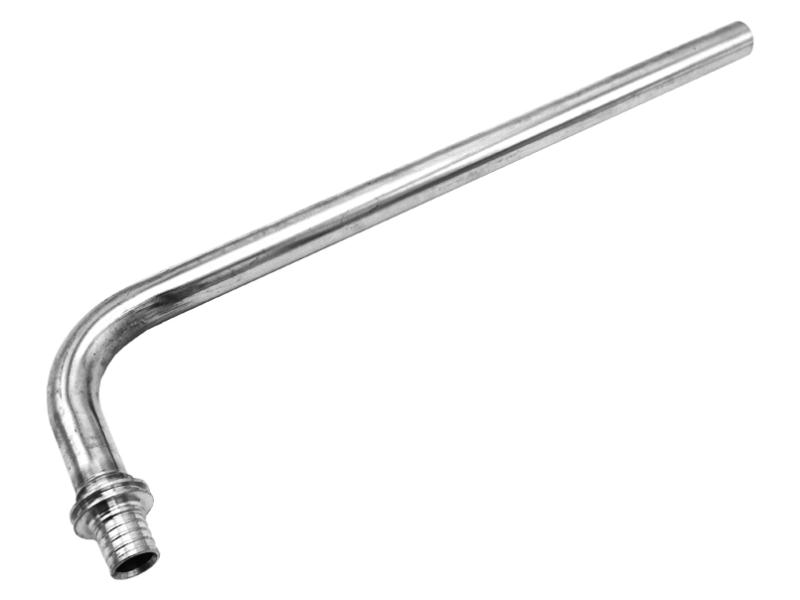 Кутник натяжний VG Pex з трубкою призначений для з'єднання труб зі зшитого поліетилену (PEX) діаметром 16 мм з додатковим відведенням через трубку Ø 15 мм до іншої труби, фітингу або обладнання. Такий фітинг широко використовують при підключенні систем водопостачання та опалення. Кутник з трубкою виготовлений з нержавіючої сталі, яка відрізняється міцністю та антикорозійними властивостями. Фітинг не схильний до перепадів тиску (10 bar) і температур (95 °C), що забезпечує його тривалий термін служби навіть у системах з підвищеною інтенсивністю експлуатації. Основна натяжна частина діаметром 16 мм забезпечує міцне зміцнення труби, а обмежувальний борт не допускає її розхитування з часом. Ручка довжиною 250 мм та Ø 15 мм розташована під кутом 90°. Це дозволяє змінити напрямок водопроводу. Фітинг монтується будь-яким зручним кінцем як горизонтально, так і вертикально. Вага — 134 г. Виробництво — Китай.