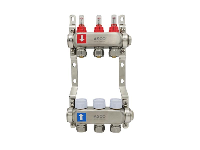 Колекторна група ASCO armatura використовується в системах водопостачання та опалення. Вона забезпечує рівномірну підтримку тиску та надходження води для всіх приладів та контурів у системі водопостачання (крани, душ, пральна машина тощо) або опалення (тепла підлога). Виготовлена з нержавіючої сталі та має три виходи з різьбою 1" для підключення металопластикових труб або РЕХ-труб Ø16 мм з товщиною стінок 2 мм. Для зручності контролю роботи оснащена вбудованими витратомірами. Колекторна група постачається у фірмовій картонній коробці зі штрихкодом. У комплект входить колекторна група з кріпленнями. Розмір коробки: 26 х 34 х 4,5 см. Виробництво: Китай.