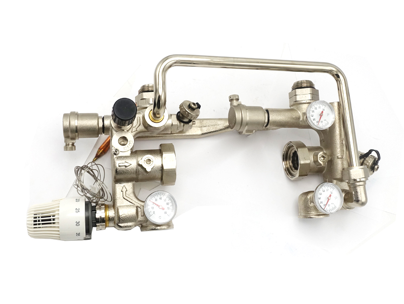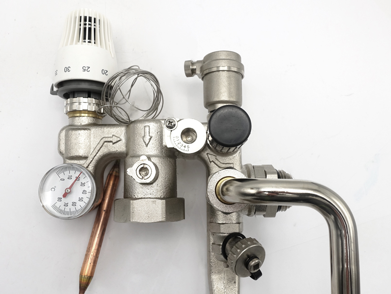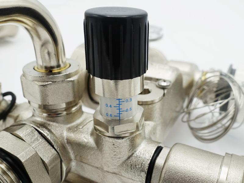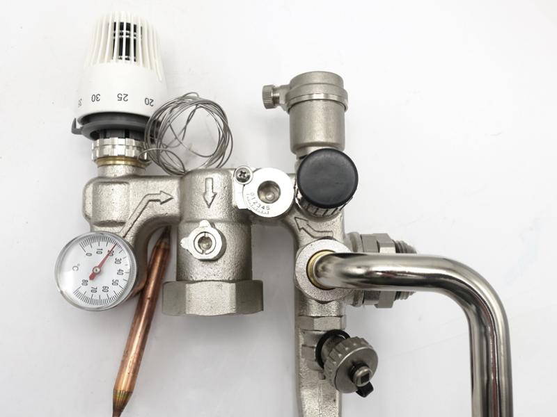 Змішувальний вузол з байпасом V&G призначений для підтримки стабільної температури в системі «тепла підлога» шляхом змішування гарячої та охолодженої води. Особливістю конструкції є наявність байпаса. Він забезпечує постійну циркуляцію теплоносія навіть при закритих контурах, що запобігає перегріву насоса та підвищує надійність роботи системи. Корпус вузла виготовлений з нікельованої латуні, яка не схильна до корозії, та оснащений виходами 1" для підключення. Вузол упакований у фірмову картонну коробку з ложементом, який не допускає деформації під час транспортування. У комплект входять кріплення. Коробка має штрихкод та розміри 43 х 25,5 х 14,5 см. Виробництво: Китай.