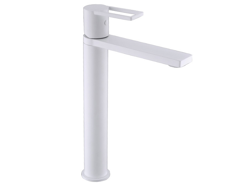 Змішувач для раковини AIM — ідеальне рішення для великих умивальників або накладних чаш. Виготовлений із міцної латуні та має матове біле покриття. Подовжений корпус висотою 26 см дуже стійкий і не схильний до розхитування. Для запобігання протіканню змішувач додатково оснащений ущільнювальною прокладкою. Нерухомий гусак довжиною 16 см обладнаний аератором для економної витрати води при збереженні напору та попередньої фільтрації. Гусак оптимально розташовується над виливом раковини, що не допускає розбризкування. Верхній важіль з керамічним картриджем плавно і точно регулює напір і температуру води. Прямокутна ручка зі зручним прорізом дозволяє легко керувати змішувачем навіть мокрими або мильними руками. На важіль нанесені кольорові маркери подачі холодної та гарячої води для комфортного використання. Змішувач кріпиться на умивальник за допомогою притискної гайки. Не вимагає особливого догляду — достатньо періодично протирати його вологою ганчірочкою. Постачається у фірмовій картонній коробці зі штрихкодом. В комплект входять: змішувач для раковини з прокладкою, 2 підводні шланги, гайка з прокладками, інструкція, гарантійний талон, трикотажні рукавички. Розмір упаковки — 368х270х74 мм. Гарантія — 5 років. Виробництво — Китай.