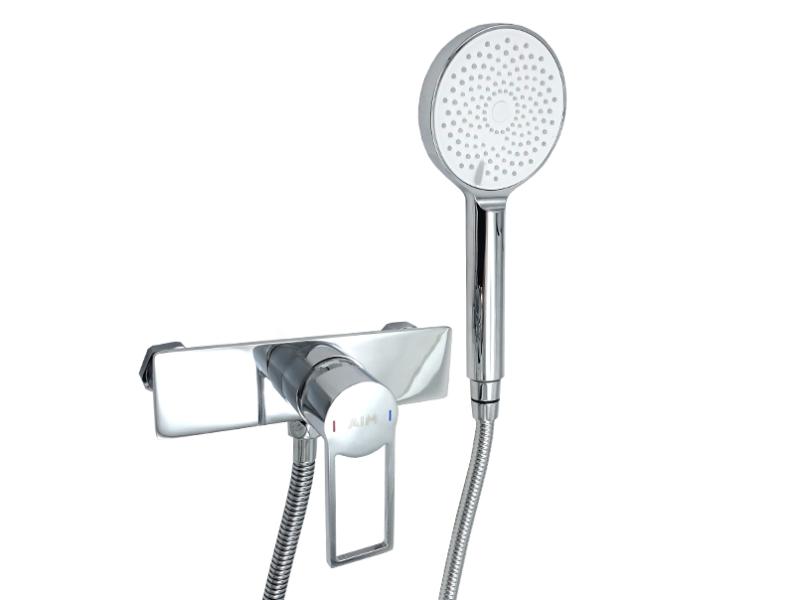 Змішувач для душової кабіни AIM виготовлений із міцної латуні та має антикорозійне хромове покриття, яке надає виробу дзеркального блиску. Литий корпус (18х4,7 см) не підлягає розхитуванню та протіканню. Верхній важіль з керамічним картриджем дозволяє плавно регулювати тиск і температуру води. Для зручного використання на важіль нанесені кольорові маркери подачі холодної та гарячої води. Змішувач з'єднаний із душовою лійкою металевим гофрованим шлангом (1,5 м). На одному кінці шланга розташована гайка для кріплення до змішувача, на іншому є з'єднання для лійки. Обидва виходи захищені пластиковими ковпачками. Душова лійка довжиною 24,5 см встановлюється на настінний тримач. На її круглій поверхні (діаметр 10,8 см) розташовані різні за розміром форсунки, які формують кілька режимів душу. Перемикання на них здійснюється за допомогою поворотного диска. Змішувач для душової кабіни монтується на стіну. Постачається в міцній картонній коробці зі штрихкодом. В комплект входять: змішувач для душової кабіни, душова лійка, тримач, шланг, накладні чаші, 2 ексцентрики з прокладками, інструкція, гарантійний талон, трикотажні рукавички. Розмір пакування 400х230х125 мм. Гарантія; 5 років. Виробництво: Китай.