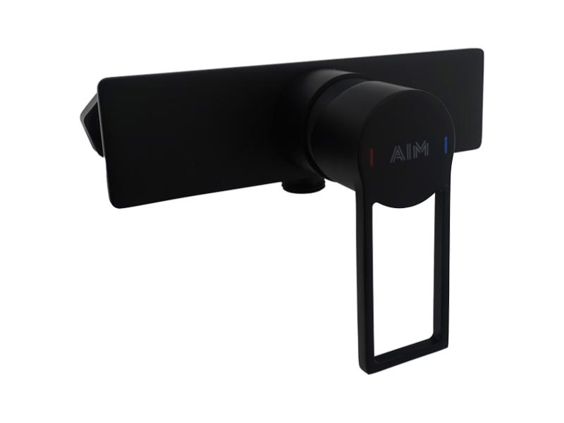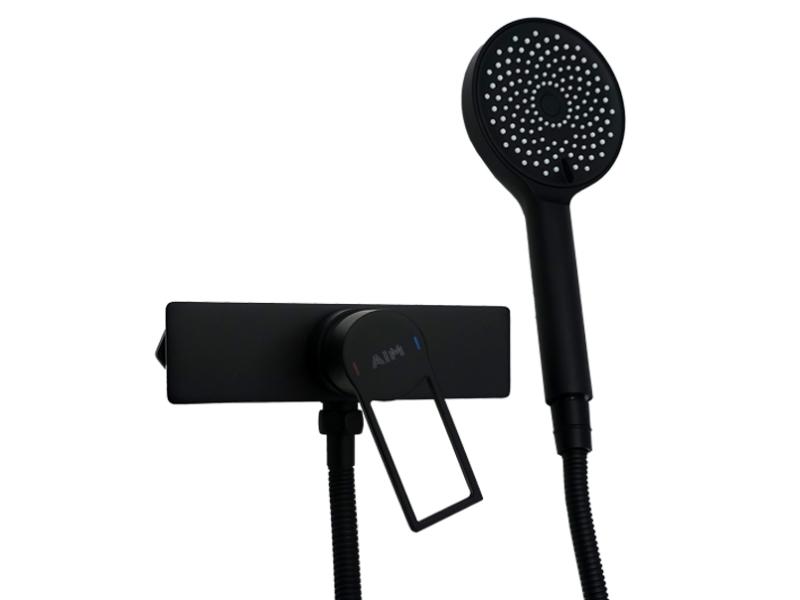 Змішувач для душової кабіни AIM виготовлений із міцної латуні та має антикорозійне матове покриття чорного кольору. Литий корпус (18х4,7 см) не підлягає розхитуванню та протіканню. Верхній важіль з керамічним картриджем дозволяє плавно регулювати тиск і температуру води. Для зручного використання на важіль нанесені кольорові маркери подачі холодної та гарячої води. Змішувач з'єднаний із душовою лійкою металевим гофрованим шлангом (1,5 м). На одному кінці шланга розташована гайка для кріплення до змішувача, на іншому є з'єднання для лійки. Обидва виходи захищені пластиковими ковпачками. Душова лійка довжиною 24,5 см встановлюється на тримач. На її круглій поверхні (діаметр 10,8 см) розташовані різні за розміром форсунки, які формують кілька режимів душу. Перемикання на них здійснюється за допомогою поворотного диска. Змішувач для душової кабіни монтується на стіну. Постачається в міцній картонній коробці зі штрихкодом. В комплект входять: змішувач для душової кабіни, душова лійка, тримач, накладні чаші, 2 ексцентрики з прокладками, інструкція, гарантійний талон, трикотажні рукавички. Розмір пакування 400х230х125 мм. Гарантія: 5 років. Виробництво: Китай.