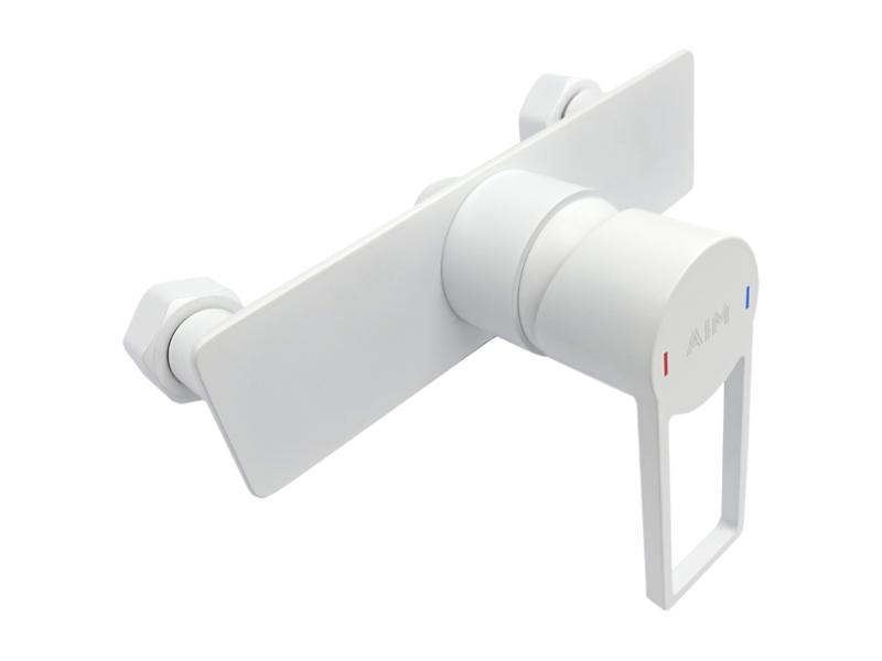 Змішувач для душової кабіни AIM виготовлений із міцної латуні та має антикорозійне матове покриття білого кольору. Литий корпус (18х4,7 см) не підлягає розхитуванню та протіканню. Верхній важіль з керамічним картриджем дозволяє плавно регулювати тиск і температуру води. Для зручного використання на важіль нанесені кольорові маркери подачі холодної та гарячої води. Змішувач з'єднаний із душовою лійкою довгим шлангом (1,5 м). На одному кінці шланга розташована гайка для кріплення до змішувача, на іншому є з'єднання для лійки. Обидва виходи захищені пластиковими ковпачками. Душова лійка довжиною 24,5 см встановлюється на тримач. На її круглій поверхні (діаметр 10,8 см) розташовані різні за розміром форсунки, які формують кілька режимів душу. Перемикання на них здійснюється за допомогою поворотного диска. Змішувач для душової кабіни монтується у стіну. Постачається в міцній картонній коробці зі штрихкодом. В комплект входять: змішувач для душової кабіни, душова лійка, тримач, накладні чаші, 2 ексцентрики з прокладками, інструкція, гарантійний талон, трикотажні рукавички. Розмір пакування 400х230х125 мм. Гарантія: 5 років. Виробництво: Китай.