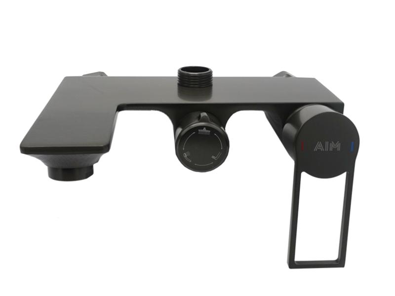 Душова стійка AIM — це стильне та функціональне рішення для сучасної ванної кімнати. Комплект включає верхній та ручний душ, що дозволяє максимально комфортно вимити тіло. Виготовлений із міцної латуні та має матове темно-сіре покриття, яке захищає від корозії та подряпин. Встановлюється на високу стійку-штангу з двох частин: нижньої (70 см) і верхньої (59 см). Висоту стійки можна частково регулювати, вибираючи оптимальне положення. Змішувач (19×7 см) оснащений керамічним картриджем для плавного та точного регулювання напору та температури води. З одного боку розташований вилив з аератором, з іншого є важіль-прапорець із зручним захопленням для рук та кольоровими маркерами гарячої та холодної води. У центрі знаходиться поворотний перемикач режимів з ванни на ручний або верхній душ. Ручна лійка з'єднана зі змішувачем гнучким гофрованим шлангом, що дозволяє вільно рухатися під час приймання душу. На її робочій поверхні лійки (7,8×10 см) розташовані два типи форсунок, які формують різні режими струменя. Перемикнути на них можна за допомогою кнопки на утримувачі. Лійку зручно тримати в руці, але можна встановити на настінний утримувач. Верхній душ (21×21 см) створює рівномірний потік води, що розсіюється. Душова стійка кріпиться на стіну і не потребує особливого догляду. Постачається в міцній картонній коробці зі штрихкодом. У комплект входять: змішувач, ручна лійка зі шлангом та тримачем, верхня лійка, накладні чаші, стійка (верхня та нижня частина), кріплення, інструкція, гарантійний талон, трикотажні рукавички. Розмір коробки 790х410х160 мм. Гарантія: 5 років. Виробництво: Китай.