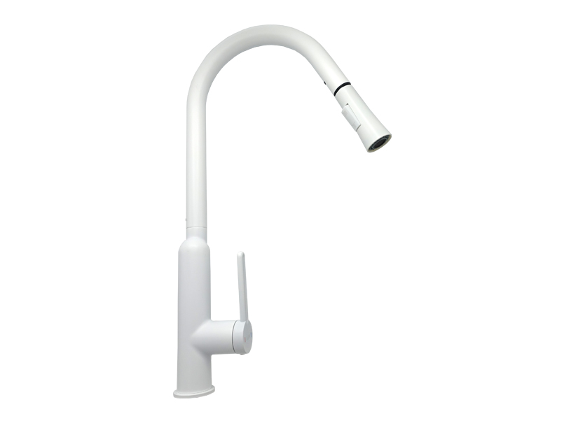 Змішувач для мийки витяжн.лійка, латунь,білий AIM, DG16057- frosted white
