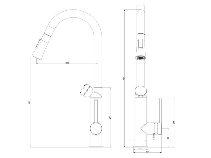 Змішувач для мийки витяжн.лійка, латунь,хром AIM,DG16057-S chrome