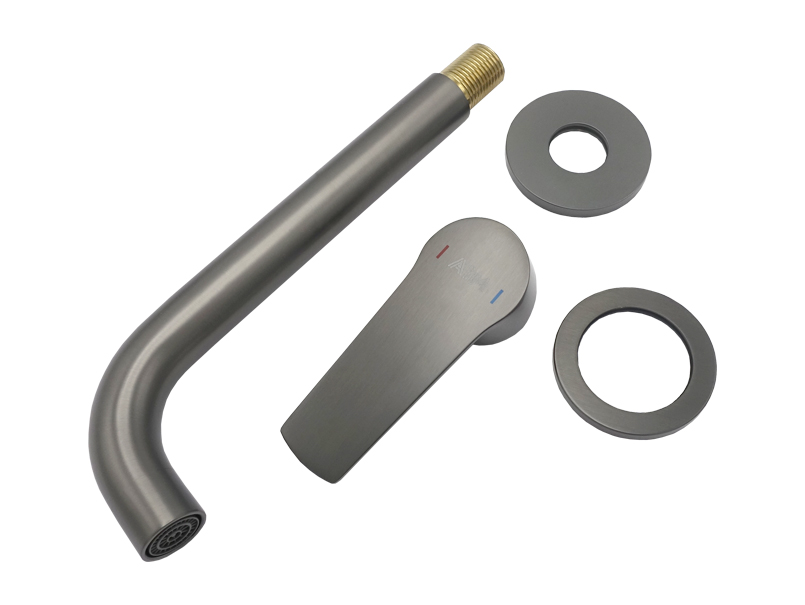 Комплект для раковини прихованого монтажу AIM поєднує сучасний дизайн і функціональність. Виготовлений із міцної латуні та має матове темно-сіре покриття, яке захищає від корозії та подряпин. Змішувач із керамічним картриджем монтується у стіну. Зовні залишаються лише елементи управління: важіль-прапорець для регулювання напору та температури води, а також вилив. Управління потоком води здійснюється за допомогою важеля довжиною 11 см, для цього достатньо відвести його убік. Довгий гусак (20 см) з плавно закругленим носиком направляє струмінь точно в центр раковини та не допускає розбризкування. Змішувач прихованого монтажу дозволяє заощадити місце на раковині й не потребує особливого догляду. Постачається у фірмовій картонній коробці (250х280х150 мм) зі штрихкодом. В комплект входять: змішувач, важіль, гусак, 2 декоративні чаші, кріплення, рукавички трикотажні, інструкція, гарантійний талон. Гарантія: 5 років. Виробництво: Китай.
