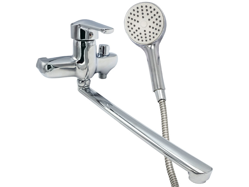 Дзеркально-сріблястого кольору змішувач з довгим гусаком для ванни ТМ MILLZ виконаний із силуміну та покритий антикорозійним хромом. Литий корпус (довжина 19 см) оснащений невеликим важелем для перемикання режимів води — з виливу на душ. Верхній важіль плавної форми забезпечує точну подачу води, а також точне регулювання її напору та температури. Легкий хід важелів забезпечують картриджні механізми. Довгий плоский гусак можна повернути в будь-який бік, а в разі потреби прочистити його. У носик виливу вмонтований аератор — для додаткового очищення та економної витрати води. Душова лійка (21,5 см) з'єднана зі змішувачем гофрованим шлангом. Рівномірно розташовані на робочому диску (Ø 8 см) форсунки створюють м'який потік струменів і мають масажний ефект. Лійку зручно тримати в руці, а за потреби можна встановити на настінний кронштейн. Змішувач монтовується на стіну. Постачається в щільній картонній коробці (368 х 125 х 102 мм), маркованій штрихкодом. В комплектацію входять: корпус змішувача, гусак, душова лійка (у пухирчастій плівці), гофрований шланг, кронштейн настінний, прокладка, 2 ексцентрики з прокладками та декоративною чашею, інструкція, гарантійний талон. Корпус змішувача запакований у білий тканинний мішечок для захисту від подряпин. Термін експлуатації — 5 років. Гарантійний термін — 12 місяців. Виробництво — Китай.