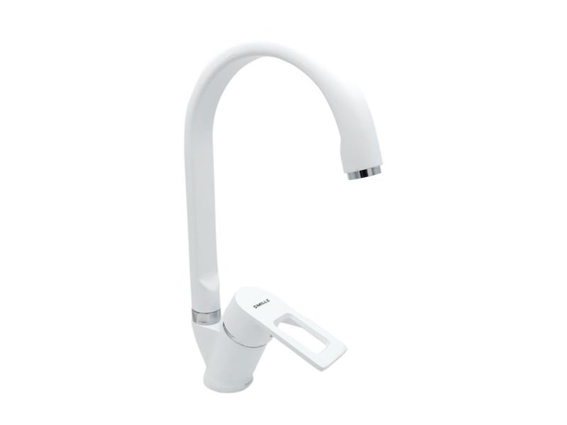 Елегантний змішувач для кухні від ТМ MILLZ виконаний із силуміну та має біле матове покриття. Хромовані основи гусака, бічної ручки та виливу підкреслюють досконалість моделі. Литий корпус не допускає самовільного розхитування та появи протікання. Високий гусак (h 25 см) напівкруглої форми можна повернути у будь-який бік, що полегшує процес миття посуду. Вбудований у вилив аератор не допускає перевитрати води. Бічна ручка прямокутної форми з прорізом оснащена картриджним механізмом, що забезпечує плавне регулювання напору та температури струменя. Догляд за змішувачем простий: досить протирати його вологою ганчірочкою. При акуратній експлуатації термін служби не менше п'яти років. Монтаж здійснюється на гайку. У комплектацію входять: змішувач для кухні, 2 підводні шланги, інструкція, гарантійний талон. Змішувач упакований у білий тканинний мішечок для захисту від подряпин. Постачається у фірмовій картонній коробці, маркованій штрихкодом. Розміри коробки — 370 х 205 х 57 мм. Гарантійний термін — 12 місяців. Виробництво — Китай.