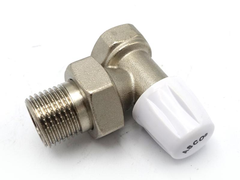 Кран радіаторний 1/2" кутовий зворотній ASСO використовується в системах опалення, а також застосовується на трубопроводах систем питного і господарського призначення, гарячого водопостачання, на технологічних трубопроводах, що транспортують рідини, неагресивні до матеріалів крана. Основне призначення радіаторного крана - плавне регулювання витрати теплоносія через опалювальні прилади. У кранах ASCO Armatura в регулюючому механізмі не використовуються гумові деталі. Регулювання виконується за допомогою латунних деталей. Група радіаторних кранів представлена хромованими і нікельованими прямими і кутовими моделями, кранами під ключ запірними і кранами під термоголовку. Виробник Туреччина, торгова марка: ASCO armatura, робочий тиск: 0,8 МПа, робоча температура середовища, що транспортується: 120 С, допустима температура навколишнього середовища: від +5 до +45°С. Корпус виготовлений з нікельованої латуні CW617N, різьба зовнішня 1/2 ", регулювання - механічне.
