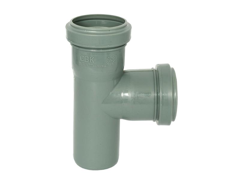 Трійник діаметр 50/50 мм, кут 90 градусів СВК для внутрішньої каналізації. СВК - це торгова марка каналізаційних труб і фітингів класу економ. Продукція призначена для обладнання систем водовідведення з максимальною температурою стічної рідини 60 град. і короткочасної (до 1 хв.) 95 градусів, а також для вентиляції і для внутрішніх зливових стоків. Також продукція оснащена ущільнювачів гумками. ПВХ продукція виробляється з непластифікованого полівінілхлориду як монолітна (одношарова), так і тришарова. Вона не псується корозією, стійка до дії кислот, лугів і солей. Монтувати конструкцію на місці досить просто, а з'єднання виходить герметичним. При демонтажі або заміні усувається деталь також швидко. Відмінні техніко-економічні характеристики показали ПВХ каналізаційні труби і фітинги з діаметрами 110-200 мм, що зробило їх дуже популярним в приватному будівництві (дачі, невеликі будови). Характеристики: виготовлені з поліпропілену, призначені для монтажу каналізації, а саме для внутрішніх каналізаційних мереж. Виробник: "СВК", Україна.