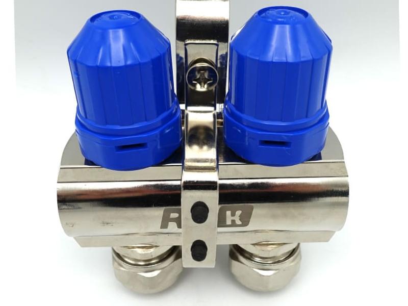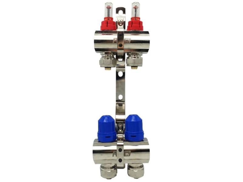Колекторна група з вбудованими витратомірами бренду RSk (Італія) зі стійким нікелевим глянцевим покриттям. З євроконусами. Кількість виходів: від 2 до 12. Діаметр виходів 1 "х 16. Матеріал: латунь CW617N, покриття - нікель. Кріплення в комплекті. Упаковка - картон з ложементом. Завдяки йому колектор не пошкодиться при трансортуванні. Колекторна група RSk (Італія) з витратомірами використовується в системах опалення та гарячого водопостачання, дозволяючи створити і забезпечити надійну стабільну роботу системи теплої підлоги. Вона дає можливість значно спростити систему, виключивши з неї додаткову арматуру. Витратоміри дозволяють знизити температуру підлоги в окремих приміщеннях, де, наприклад, на даний момент ніхто не живе. у цілому колекторна група в зборі RSk призначена для виконання своєї головної функції - забезпечення рівномірного тиску і надходження води для всіх приладів і контурів в системі. Комплект поставки колекторної групи для теплої підлоги включає подає колектор з витратомірами, зворотний колектор і кріплення. Габарити коробки: 380*230*60 мм