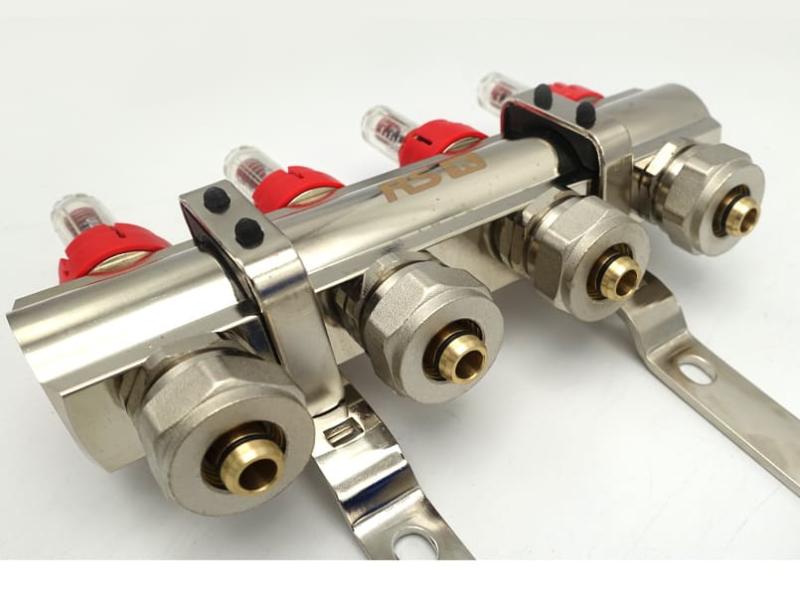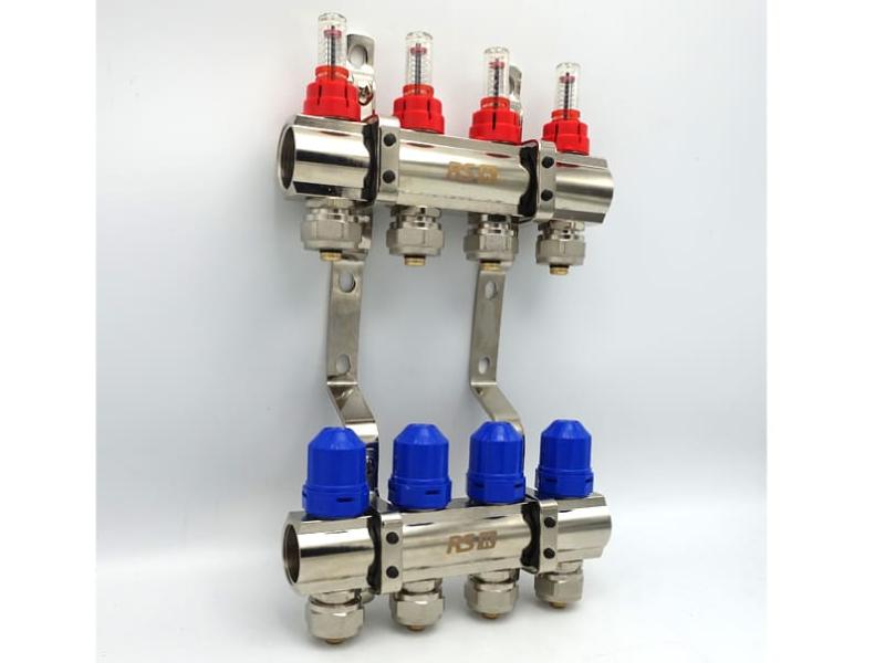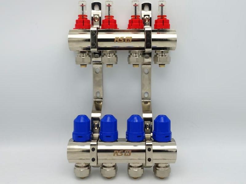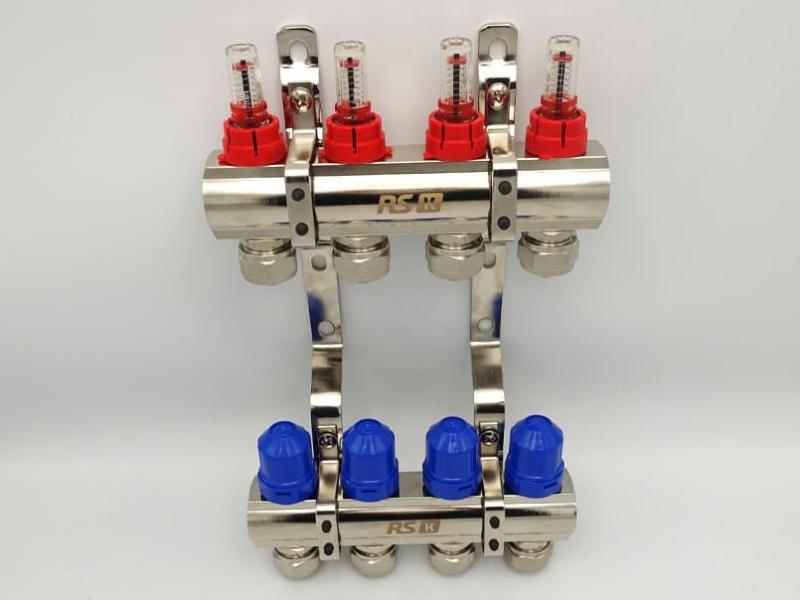 Колекторна група з вбудованими витратомірами бренду RSk (Італія) зі стійким нікелевим глянцевим покриттям. З євроконусами. Кількість виходів: від 2 до 12. Діаметр виходів 1 "х 16. Матеріал: латунь CW617N, покриття - нікель. Кріплення в комплекті. Упаковка - картон з ложементом. Завдяки йому колектор не пошкодиться при трансортуванні. Колекторна група RSk (Італія) з витратомірами використовується в системах опалення та гарячого водопостачання, дозволяючи створити і забезпечити надійну стабільну роботу системи теплої підлоги. Вона дає можливість значно спростити систему, виключивши з неї додаткову арматуру. Витратоміри дозволяють знизити температуру підлоги в окремих приміщеннях, де, наприклад, на даний момент ніхто не живе. у цілому колекторна група в зборі RSk призначена для виконання своєї головної функції - забезпечення рівномірного тиску і надходження води для всіх приладів і контурів в системі. Комплект поставки колекторної групи для теплої підлоги включає подає колектор з витратомірами, зворотний колектор і кріплення. Габарити коробки: 380*330*60 мм