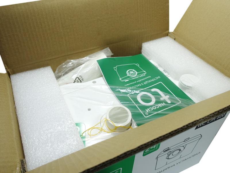 Каналізаційна установка призначена для транспортування стічних вод від побутових джерел, таких як туалети, умивальники, ванни, душові кабіни, пральні та посудомийні машинки, із житлових приміщень, де відсутня можливість природного стоку цих стічних вод у каналізаційну систему. Не призначена для перекачування агресивних хімікатів і розчинників, пластикових виробів, предметів особистої гігієни, металевих предметів, будівельних матеріалів та інших подібних речовин. Насосна частина: Вал двигуна виготовлений із нержавіючої сталі AISI 304. Робоче колесо виготовлене з технополімеру. Вихідний патрубок також виготовлений із технополімеру. Ріжучий механізм (ніж) виготовлений із нержавіючої сталі AISI 304. Електродвигун: Це асинхронний тип двигуна з вбудованою в обмотку термозахистом Обмотка статора виготовлена з міді. Робоча напруга становить 220-240 Вольт. Частота мережевого живлення - 50 Герц. Клас ізоляції - F. Клас захисту - IP44. Довжина кабелю - 1,5 метра. Продуктивність – 240л /хв. Напір 10 метрів. Умови застосування: Максимальна температура рідини, яку можна обробляти насосом: +90 ºC. Максимально допустимий розмір частинок у рідині у підвищеному стані: 5 мм. Рівень показника води (pH) повинен бути в межах 6,5 - 8,5. Загальна мінералізація води не повинна перевищувати 1500 г / м³. Режим роботи - S3-50% (це означає, що насос може працювати 1 хвилину, з цього часу 30 секунд вимкнено та 30 секунд вимкнено). Гарантійний термін обслуговування - 24 місяці. Габарити самого насоса, мм: ш190 * д400 * в270