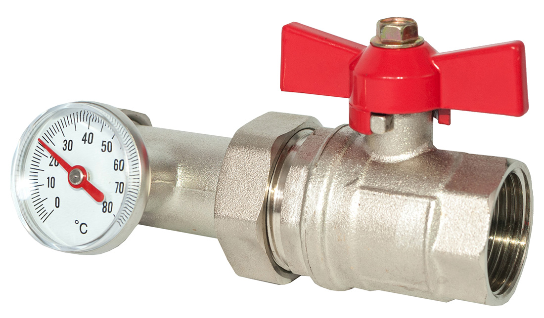 Кран для колектора з термометром прямий 1" ASCO