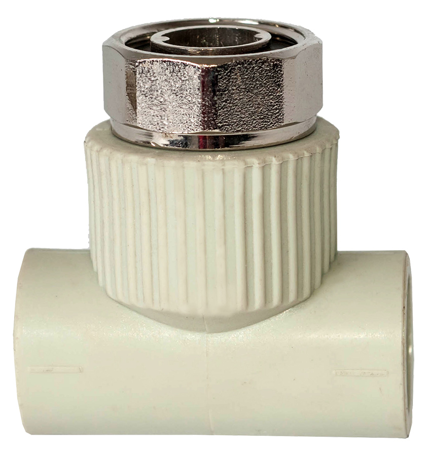 Трійник PPR з накидною гайкою Ø32 х 1" Tebo сірий 10/40