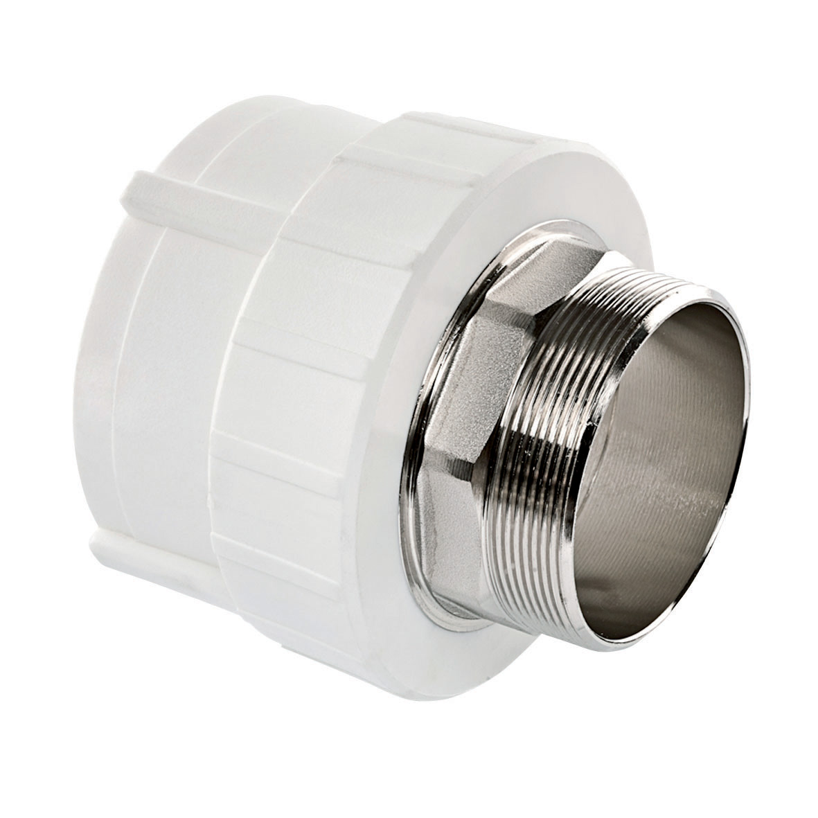Муфта PPR зовнішня під ключ Ø50 х 1 1/2"З Tebo біла 6/24