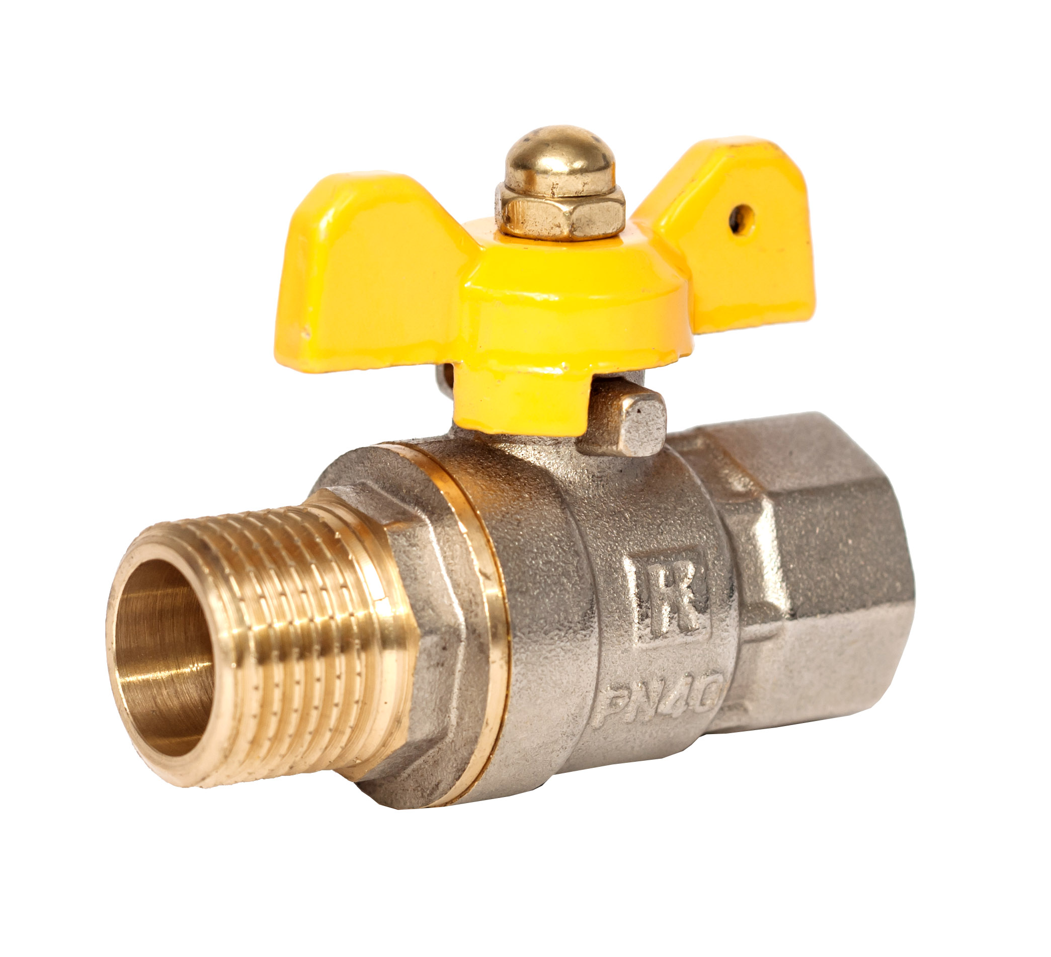 Кран кульовий для газу 1/2"ЗВ жовтий метелик RSk Iталiя 20/160