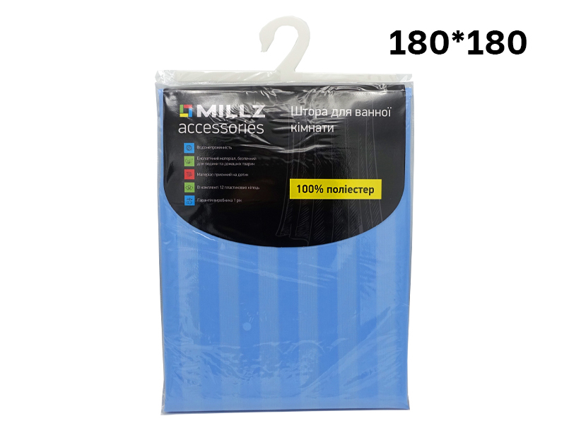 Шторка - фіранка для ванної MILLZ блакитна поліестер 180х180 MRS-P-063