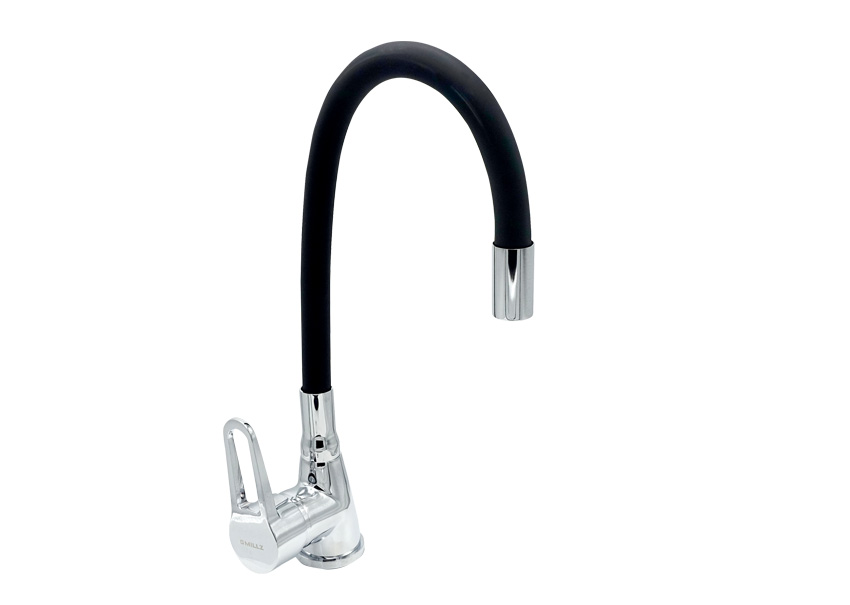 Змішувач для кухонної мийки MILLZ бокова ручка MZH 7-B-В045-35 гнучкий чорний гусак