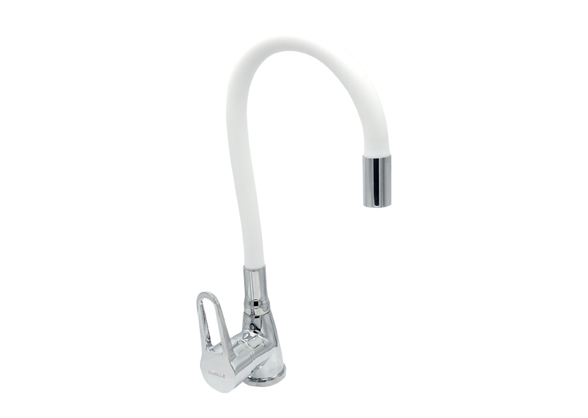 Змішувач для кухонної мийки MILLZ бокова ручка MZH 7-W-В045-35 гнучкий білий гусак