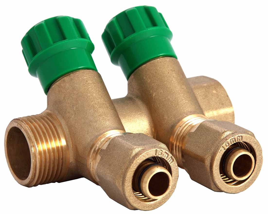 Колектор 1" x 16*2.0, 2 виходи зелені вентилі ASCO 1/28
