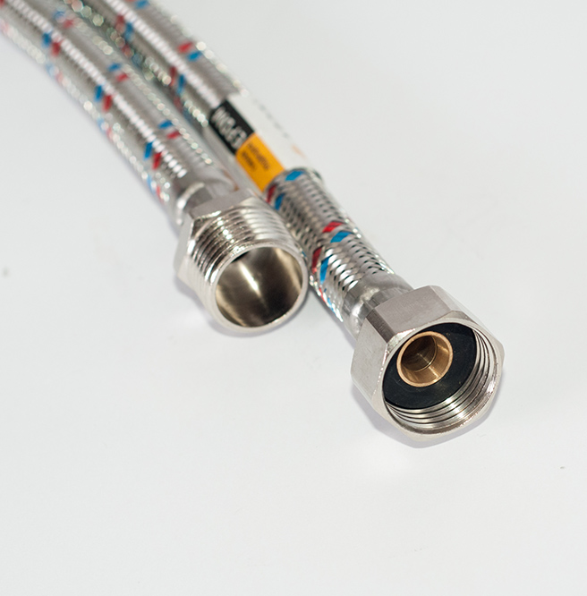 Шланги виробляються з нетоксичної гуми (EPDM) і мають обплетення з нержавіючого сталевого дроту (AISI 304). Кінці шлангів укомплектовуються сполучними фітингами з розмірами латунних штуцерів і накидних гайок. Надійність шланга і підводки забезпечується ще й тим, що всі сполучні деталі виконані з нержавіючої сталі AISI 304, а латунні гайки мають достатню висоту і товщину стінок. Продукція сертифікована в Україні і розроблена спеціально для використання в системах водопостачання і опалювання нашої країни. Підходять для гарячої та холодної води. Основні характеристики: • Довжина: 2 м • Радіус вигину: 30 мм • Робочий тиск: 10 bar • Розмір різьблення, дюйм 1/2 "х 1/2" • Тип підключення: ЗВ • Температура: - 5 + 90 ° С • Пропускна здатність при тиску 3 bar: 32 л / хв • Внутрішній діаметр: 8,5 мм; • Зовнішній діаметр: 12,5 мм Підведення ASCO Armatura легко монтувати. Вони надійні, послужать вам довгі роки