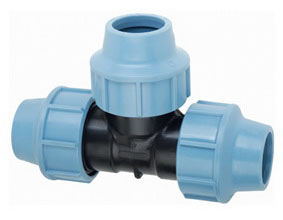 Затискний трійник для поліетиленових труб, діаметр Ø32. Компресійні фітинги застосовуються для створення зовнішніх водопроводів, поливних систем і використовуються переважно для транспортування холодної води. Переваги: доступність за ціною, невелика вага, швидкий і легкий монтаж, що не вимагає додаткових інструментів, можливість створення роз'ємних з'єднань. Номінальна температура для застосування – 20˚С, а максимальна робоча температура – до 60˚С в межах робочого діапазону труб. Номінальний тиск залежить від діаметра: для 16, 20, 25, 32, 40, 50, 63 мм він складає 16 бар, для фітингів 75, 90 і 110 – 12,5 бар відповідно. Компресійні фітинги виробляються за стандартами UNI, ISO, DIN, NF, різьба за стандартами UNI, а фланцеві з'єднання відповідають вимогам UNI і DIN. Всі фітинги виконані за загальними технічними умовами. Для виготовлення фітингів використовується: чорний поліпропілен для корпусу, чорна прокладка з нітрилової гуми, біле затискне кільце з поліацетата і гайка з поліпропілену.