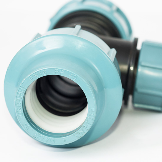 Трійник, редукційний для поліетиленових труб Ø40 х 25 х 40. Компресійні фітинги застосовуються для створення зовнішніх водопроводів, поливних систем і використовуються переважно для транспортування холодної води. Переваги: доступність за ціною, невелика вага, швидкий і легкий монтаж, що не вимагає додаткових інструментів, можливість створення роз'ємних з'єднань. Номінальна температура для застосування – 20˚С, а максимальна робоча температура – до 60˚С в межах робочого діапазону труб. Номінальний тиск залежить від діаметра: для 16, 20, 25, 32, 40, 50, 63 мм воно складає 16 бар, для фітингів 75, 90 і 110 - 12,5 бар відповідно. Компресійні фітинги виробляються за стандартами UNI, ISO, DIN, NF, різьба належно до UNI, а фланцеві з'єднання відповідають вимогам UNI і DIN. Всі фітинги виконані за загальними технічними умовами. Для виготовлення фітингів використовується: чорний поліпропілен для корпусу, чорна прокладка з нітрилової гуми, біле затискне кільце з поліацетата і гайка з поліпропілену.