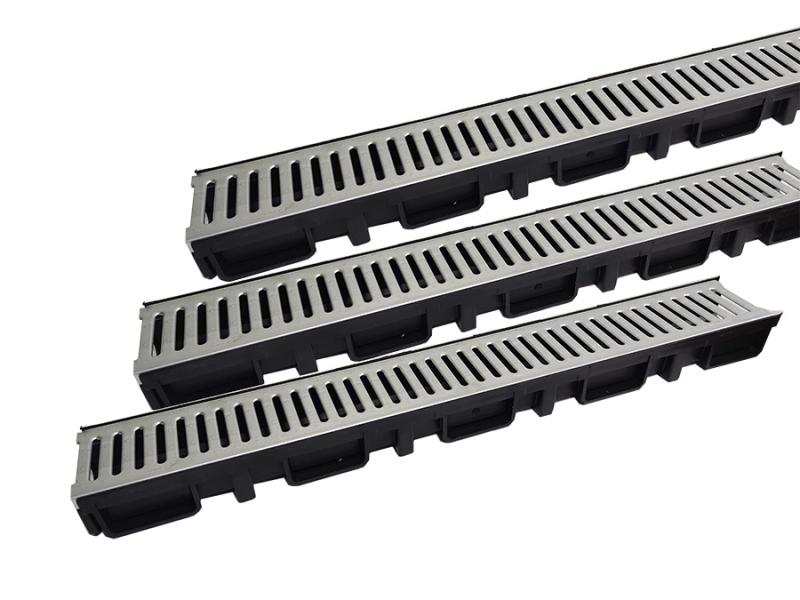 Вуличний дренажний лоток Drainland від компанії-виробника Туреччина Mesa Teknik. Найпоширеніший тип вуличних лотків - лінійні дренажні трапи, так як вони надзвичано прості в монтажі та мають невелику вагу. В лінійних лотках відсутні складні конструкції труб, що не дозволяє забруднюватися каналам. Дренажні трапи для вулиці серії Drainland поставлються в коробці, 3шт по 1 м. Розміри лотка 130*75*1000 мм. Кришка з отворами у вигляді "дощику" виготовлена з якісного металу та має гальванічне покриття. Продається у картонному заводському пакуванні з нанесенням маркування та з отвором для підвішування.