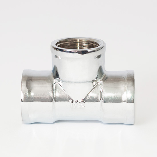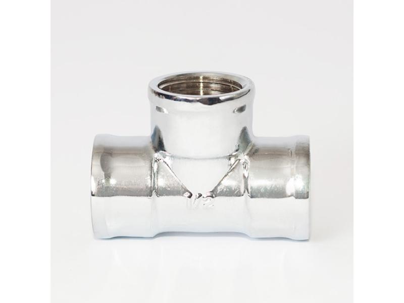 Хромований трійник, внутрішній-внутрішній-внутрішній, діаметр різьби 1/2 дюйми. Різьбові фітинги – це компоненти трубопроводу, що застосовуються для розгалуження і з'єднання його окремих частин, перехід на трубу більшого або меншого діаметра. Важливою сферою застосування різьбових фітингів є їх використання при підключенні сантехнічних приладів (зливні бачки, змішувачі, котли, бойлери, системи очищення води, пральні та посудомийні машини). Латунні нікельовані фітинги ASCO Armatura застосовуються для з'єднання різних видів трубопроводів, а також для підключення сантехнічної арматури, різноманітних приладів, пристроїв контролю і регулювання трубопровідних систем. Ці фітинги виготовляються методом гарячого штампування, що дозволяє отримувати вироби підвищеної міцності з потовщеними стінками. Асортимент різьбових фітингів включає: коліна, трійники, муфти, ніпелі, заглушки, перехідники, футорки, прямі та кутові згони-американки. Продукція фірми ТМ ASCO armatura є надійною, якісною, з тривалим терміном служби.