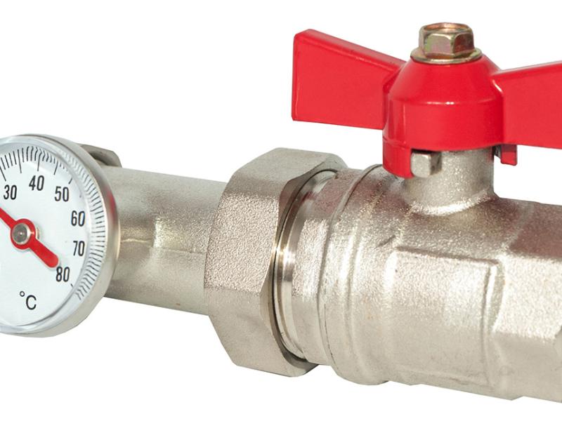 Кутовий / прямий кран для колекторної гребінки c термометром фактично є поєднанням двох важливих для системи опалення елементів: кульового крана і термометра для вимірювання температури теплоносія. Вимірювальна шкала - від 0 до 80 градусів Цельсія. Кульовий кран з метеликом виконаний з високоякісної латуні і має нікельоване покриття. Такий нескладний в монтажі прилад дозволяє контролювати роботу системи опалення та вчасно реагувати на відхилення в ній. Кран для колекторної гребінки ASCO Armatura є важливою частиною системи опалення, він проводиться з якісної нікельованої латуні, розмір приєднувальних різьби 1 ".