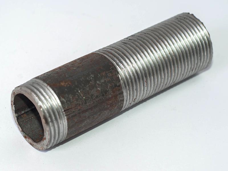 Згін сталевий розмір різьби 3/4" дюйма. Фітинги для металевих труб діляться на різьбові та зварні. Їх основне призначення – з'єднання двох і більше контурів різного перетину. Сталеві конструкції відмінно зарекомендували себе за рахунок високого ступеня міцності, надійності, однак не варто забувати про те, що для створення герметичного з'єднання циліндричну різьбу ущільнюють паклею, змоченою залізним суриком, замішаним на натуральній оліфі, фум-стрічкою, або спеціальною ущільнювальною ниткою. Фітинги, завдяки матеріалу, можуть мати різьбу різної довжини. Використовуються для з'єднання труб в системах опалення, водопроводу, газопроводу та інших системах, що працюють в умовах неагресивних середовищ (вода, насичена водяна пара, горючий газ і ін.) при температурі середовища не вище 175 °С і тиску Р = 1,6 МПа. Сталь, як і будь-який метал, боїться корозії. З метою захисту металу від корозії, сталь покривається шаром цинку. Такі вироби називаються оцинкованими. Вони мають підвищений експлуатаційний ресурс.