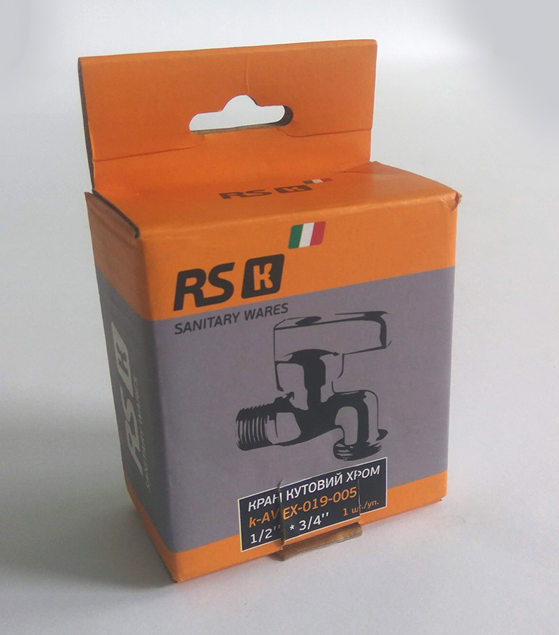 Кутові приладові крани торгової марки RSk (Італія) призначені для підключення сантехнічних приладів, в тому числі пральних та посудомийних машин, унітазів, бойлерів. Матеріал кранів – високоякісна латунь. Покриття – хром. Поставляються в картонній упаковці в комплекті з декором (декоративна чашка) круглої форми. Розміри 1/2"х1/2" і 1/2"х3/4".