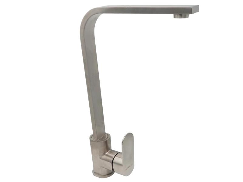 Змішувач високий з боковою ручкою із нержавіючої сталі для кухонної мийки. Діаметр картриджа: 35 мм. Країна виробник: Китай. Кріплення в комплекті. Гарантія на корпус змішувача один рік. Змішувач продається в міцній картонній коробці. Комплект поставки: змішувач, кріплення, інструкція, гарантійний талон. Задля уникнення подряпин корпус змішувача упаковано в зелений тканинний мішечок. Перевірена модель, вивірений дизайн роблять цей змішувач фаворитом покупців. Матеріал: нержавіюча сталь AISI 304 Розмір упакування: довжина, см: 40,5 ширина, см: 21 висота, см: 6